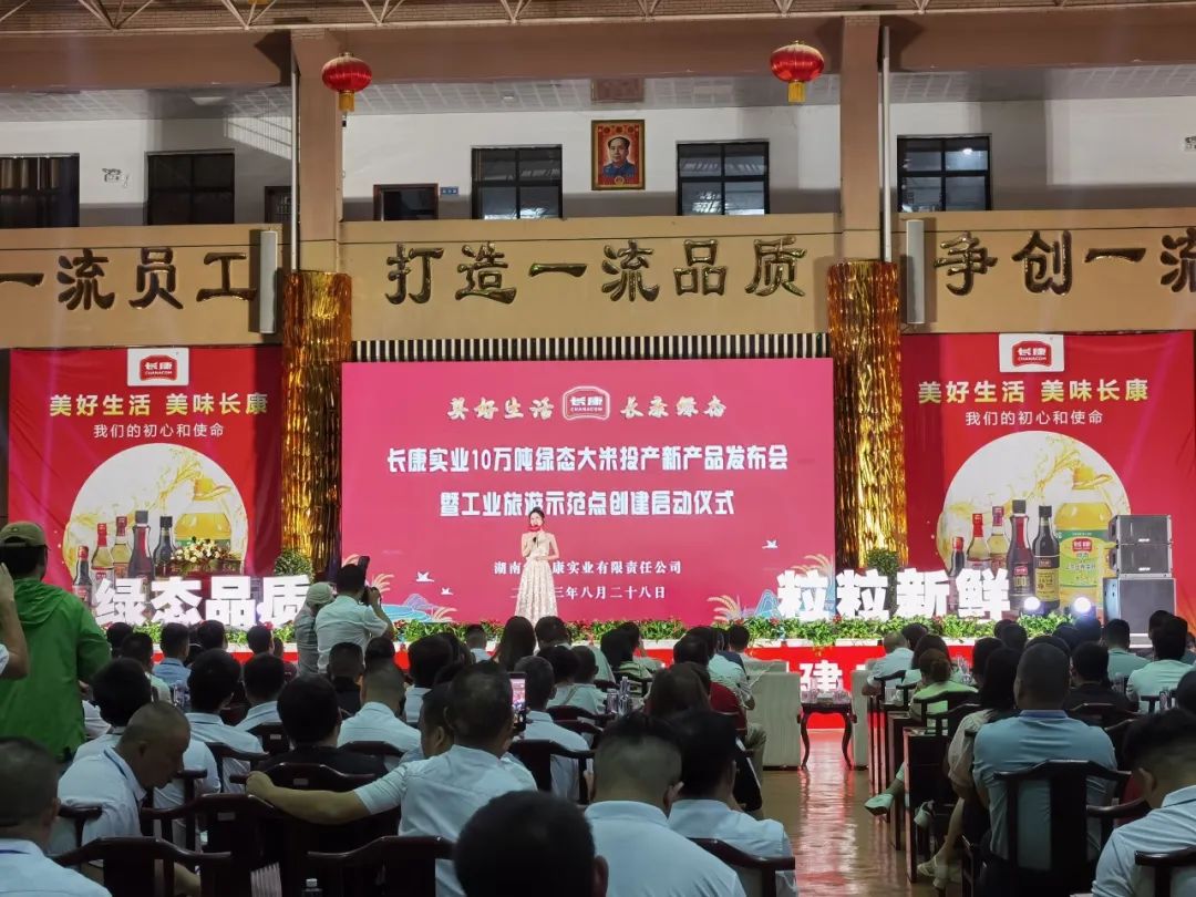 2023年8月28日,長(zhǎng)康實(shí)業(yè)10萬噸綠態(tài)大米加工投產(chǎn)新產(chǎn)品發(fā)布會(huì)暨工業(yè)旅游示范點(diǎn)創(chuàng)建的啟動(dòng)儀式在湘陰舉辦。湘陰縣各級(jí)領(lǐng)導(dǎo)、部門單位、戰(zhàn)略合作單位及來自全國(guó)優(yōu)秀的200多名客商代表們齊聚一堂,共同見證長(zhǎng)康新品——綠態(tài)大米首次發(fā)布。