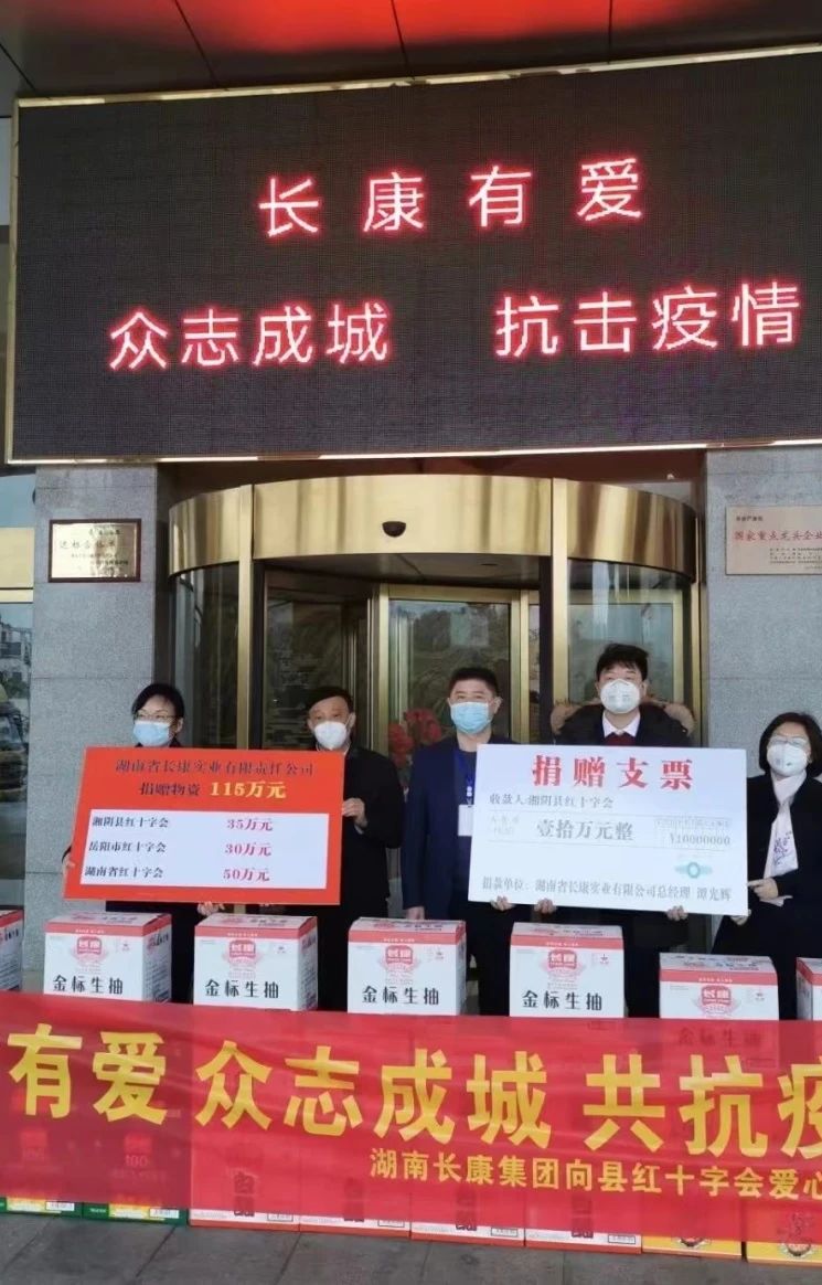 從5萬元物資慰問縣防汛工作者,到在當?shù)毓诿麆?chuàng)立“洋沙湖鎮(zhèn)長康愛心教育基金會”,再到馳援甘肅、張家界等地,以及疫情期間向湖南省、岳陽市、湘陰縣紅十字會捐贈115萬元生活物資,長康集團始終沖在前面,竭盡所能回饋社會。